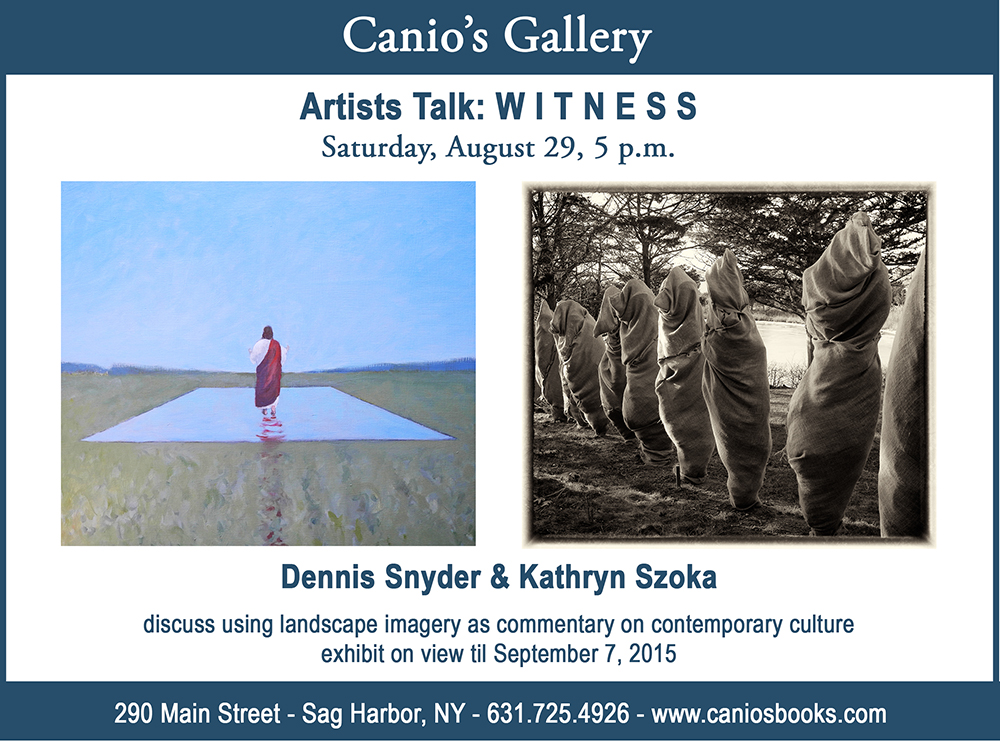 Dennis Snyder is an experienced painter who has trained his creative eye on the East End landscape and it’s changes over the years. Snyder’s work offers more than the traditional landscape, juxtaposing elements in a surprising, at times surreal way, confronting the viewer with a thought provoking commentary on our contemporary landscape. Kathryn Szoka’s new photographic series, WITNESS, explores modern themes, including isolation, discrimination, and others, through her camera’s lens.